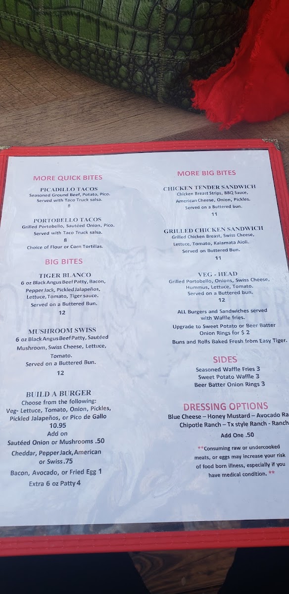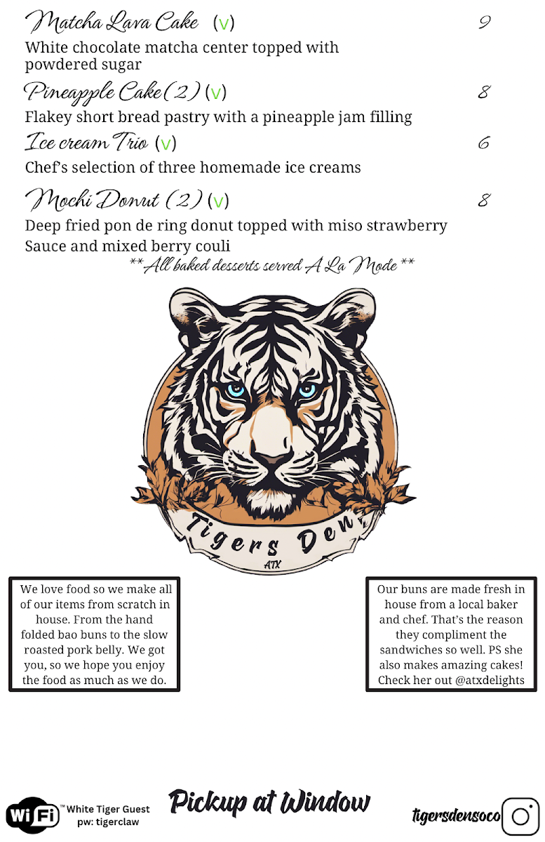 Whether you’re stopping by for a casual bite, enjoying a refreshing iced tea, or savoring a handcrafted cocktail while listening to live music, White Tiger’s menu thoughtfully supports the easygoing and community-centered experience the venue is known for.