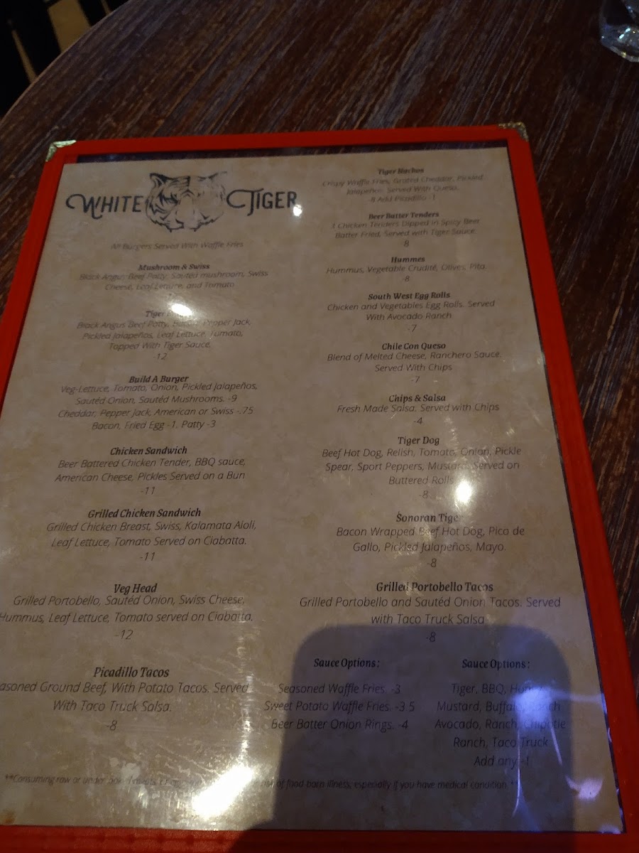 White Tiger Menu
